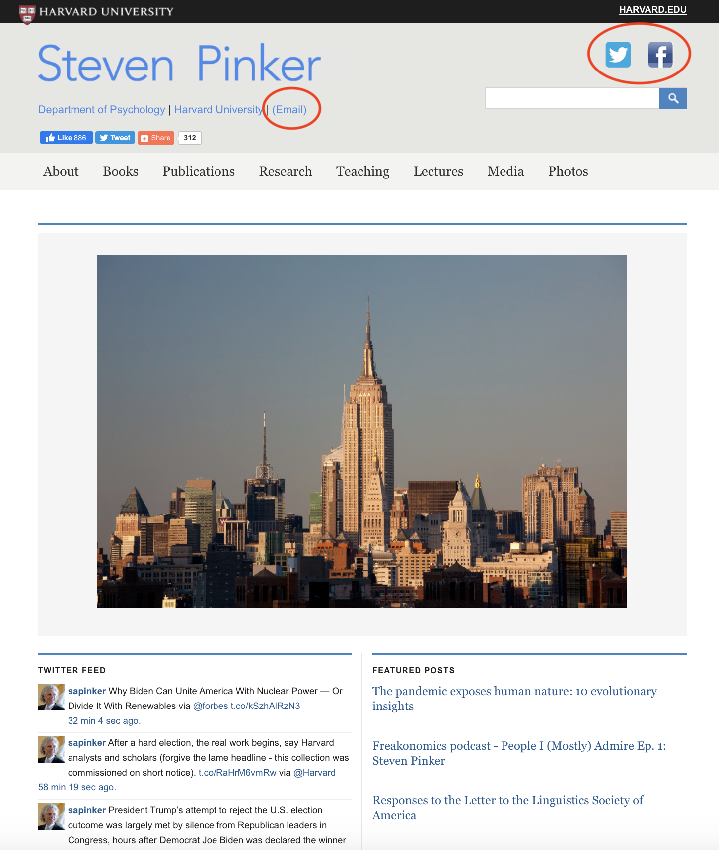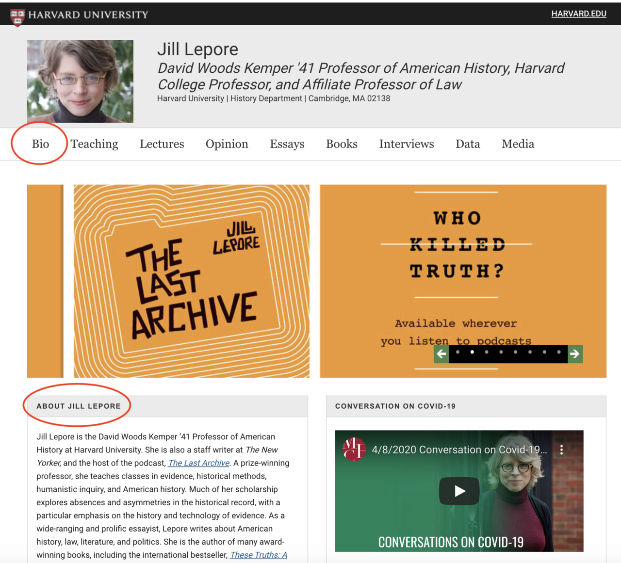 Most university faculty have a page within their institution’s website. These pages typically contain basic information including a headshot, short bio, department and contact information.
