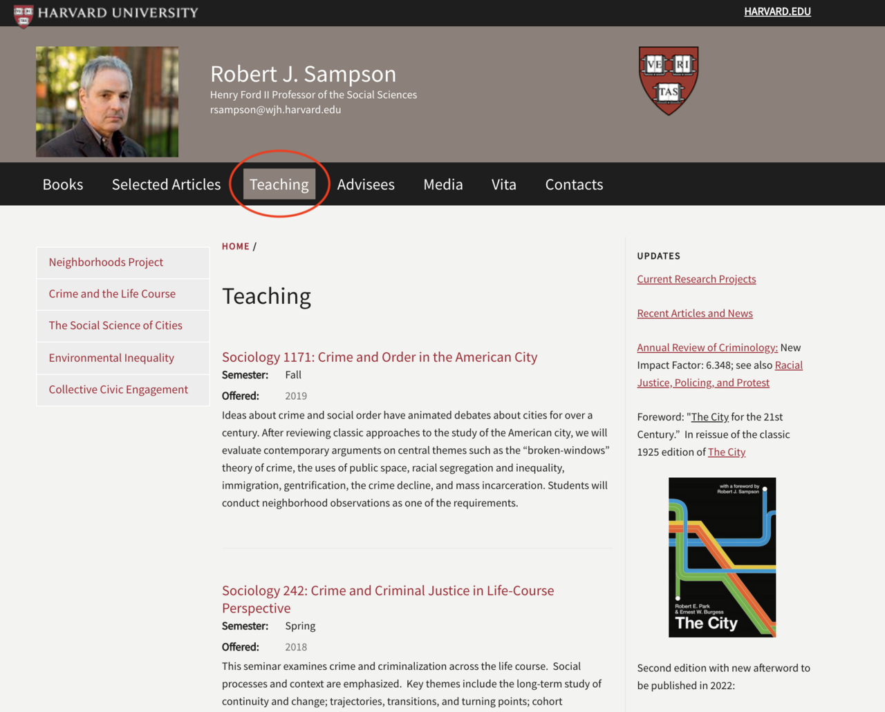 The Teaching and Learning section is where you connect with current and future students. Include current and past class listings, course materials, and openings for graduate students or other collaborators to teach with you.